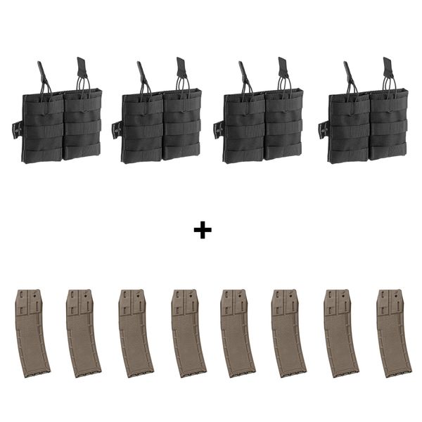 4x 5.56 Double Mag Pouch schwarz + 8x CF20 Pro Magazin earth Sparpaket 11